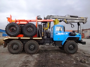 Лесовозный тягач Урал на усиленном шасси Урал 55571-1112-40 (усиленные: рама, мосты, рессоры), двиг. ЯМЗ-236НЕ2, Евро-2, 230 л. с, новый с Госрезерва, колёсная формула 6х6, колёсная формула 6*6, централизованная накачка шин, новые шины ОИ-25 (14,00-20 «высокие»), полный заводской кап. ремонт 2019 г., всё новое (рама, кабина, усиленные мосты, тормозная система, электрооборудование, оптика, АКБ, РТИ и т. д.), предпусковой подогреватель двигателя ПЖД-30Г, с новой лесовозной площадкой с поворотными нераспашными кониками, с новым 2019 г. в. гидроманипулятором МАЙМАН — 90S (производство ООО «Майкопский машиностроительный завод»), макс. г/п 3 тн, макс. вылет стрелы 7,8 м. полноповоротный ротатор с двухчелюстным грейферным захватом для леса.